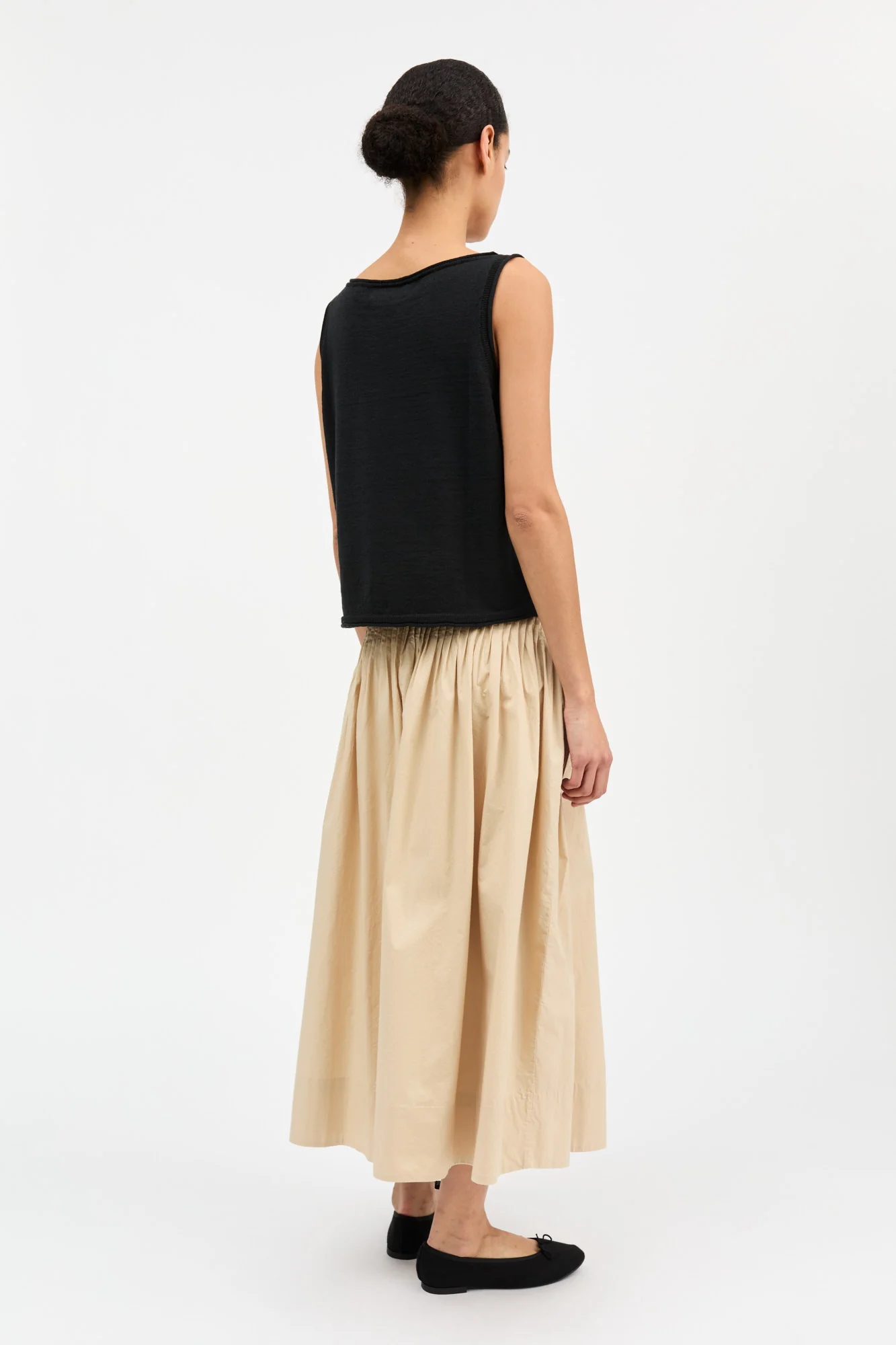 FALDA LARGA COLOR ARENA CON DETALLE DE PLIEGUES PAVLOVA | SKALL STUDIO