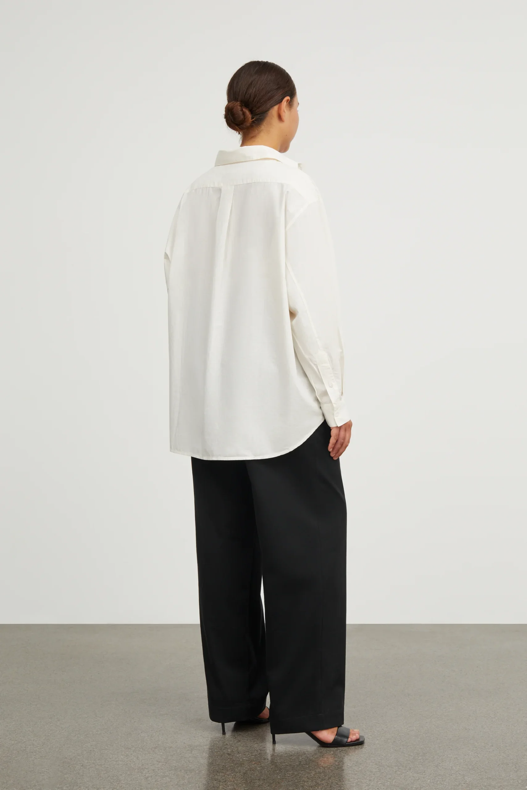 N8 SK 3013 EDGAR CAMISALa camisa Edgar es una camisa de gran tamaño inspirada en la ropa masculina hecha de popelina de algodón orgánico. La camisa tiene un cuello regular, mangas largas con puños abotonados y un frente abotonado. Tiene un bolsillo en el pecho y un yugo con pliegues anchos en la parte posterior.