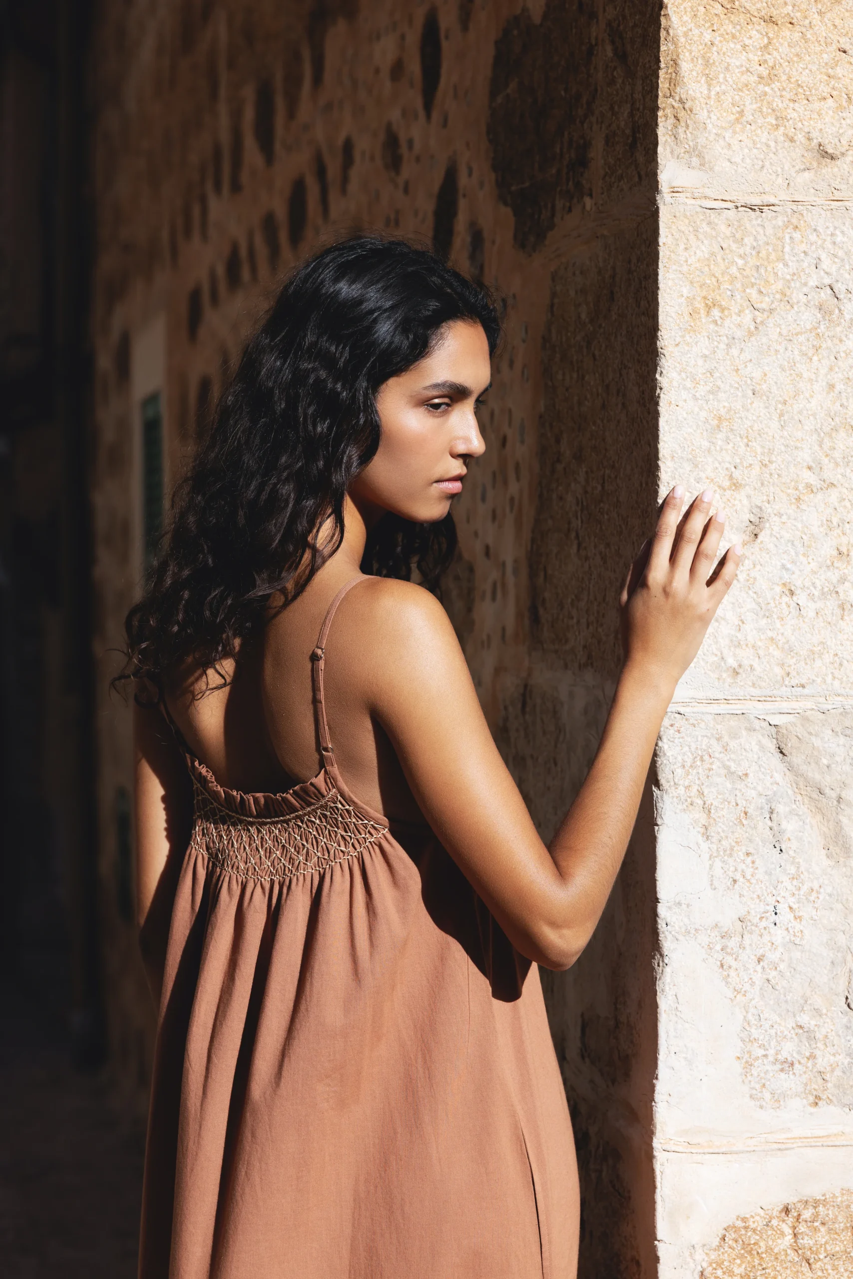 VESTIDO LARGO DE TIRANTES CON BORDADO | HOD PARIS