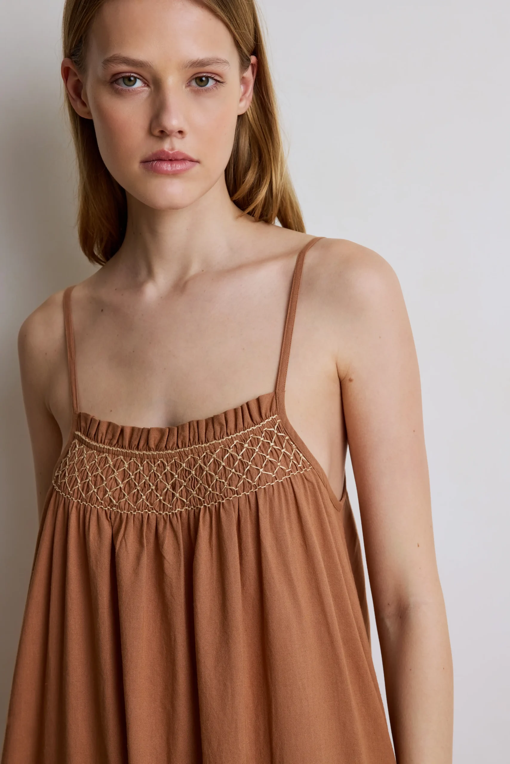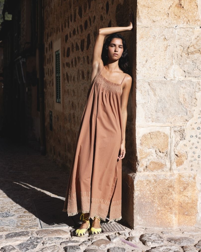 LEXIMA es el vestido que huele a verano. Sus tirantes finos son ajustables. Tiene un corte ancho y dos bolsillos laterales. También tiene bonitos detalles de bordado en el pecho y en la parte inferior del vestido.