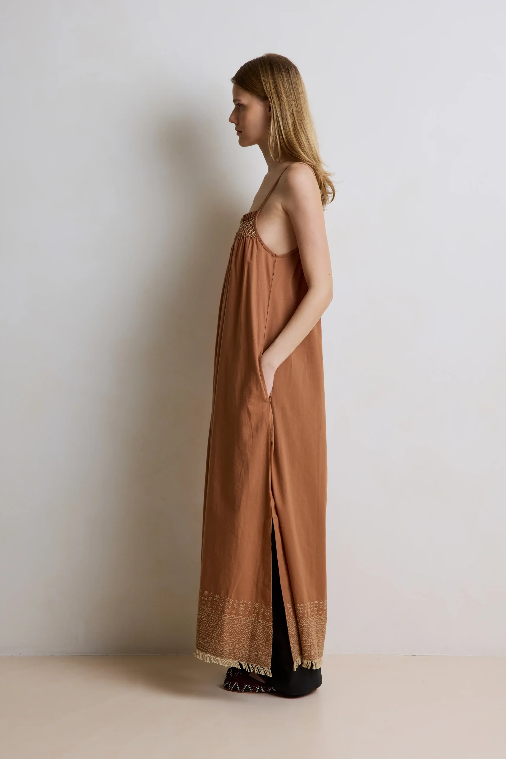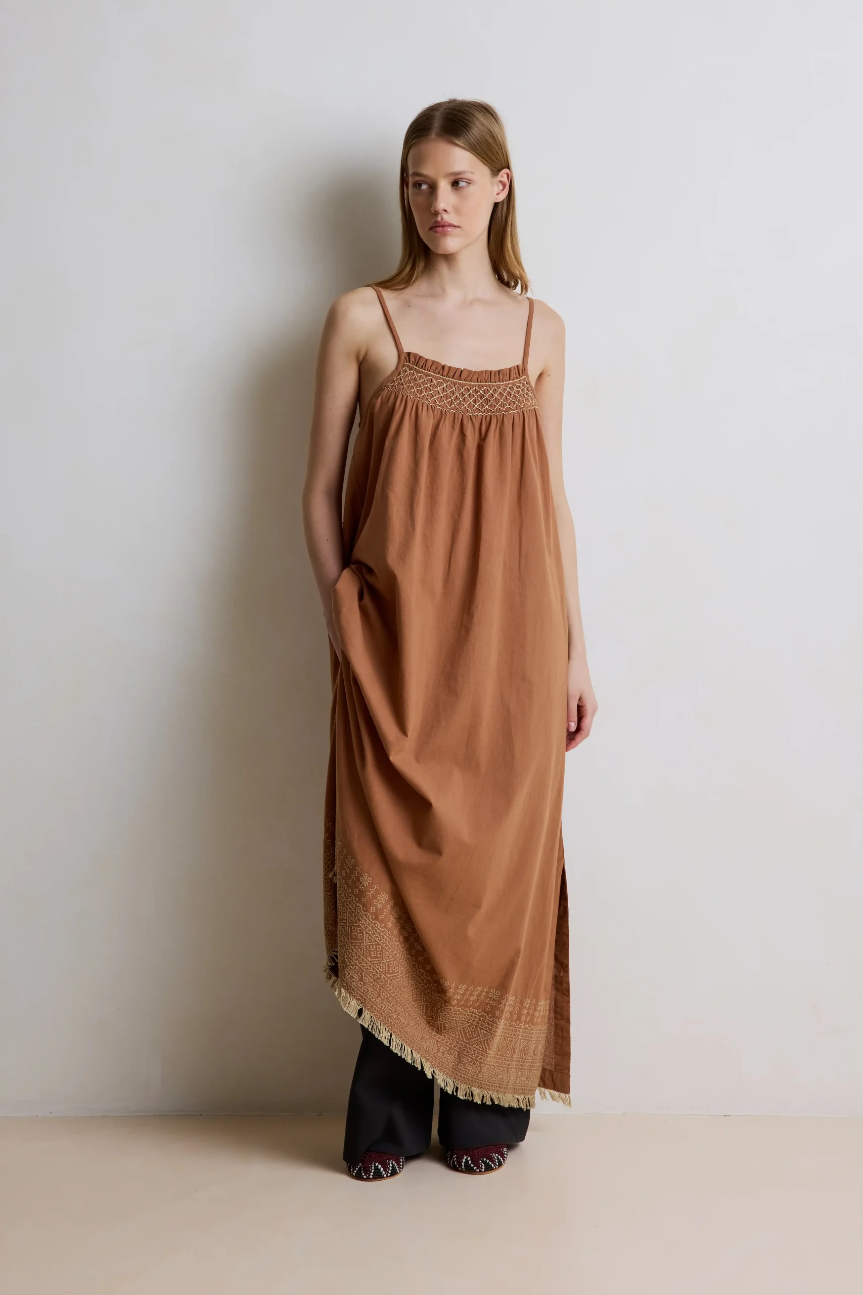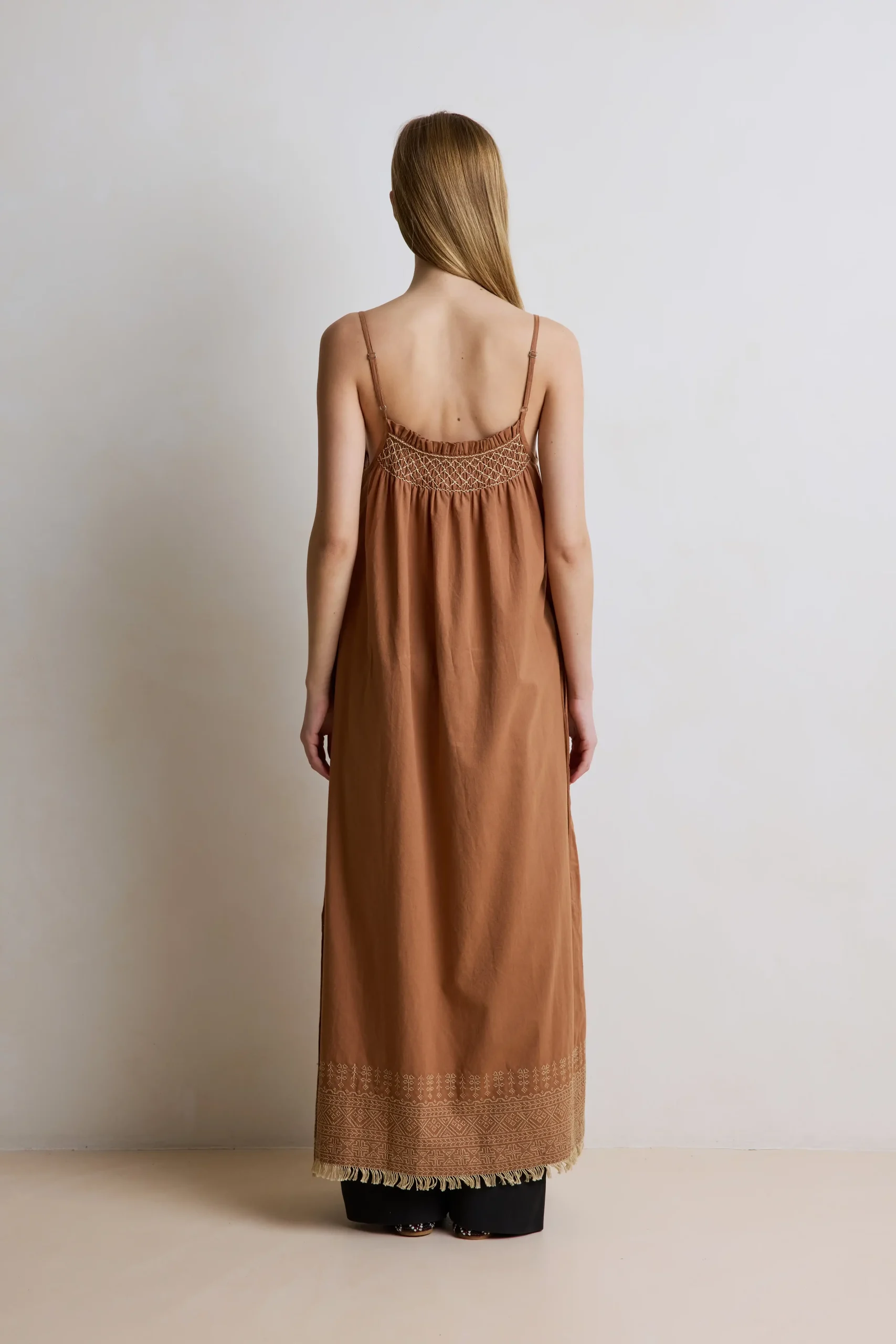 VESTIDO LARGO DE TIRANTES CON BORDADO | HOD PARIS