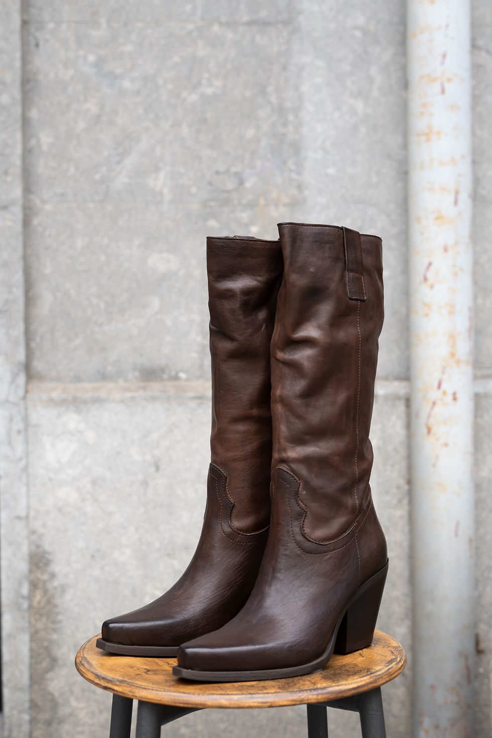 BOTAS DE PIEL MARRÓN CON TACÓN | ZOE