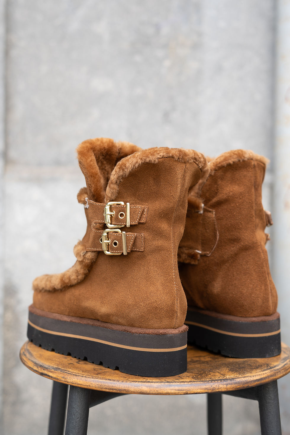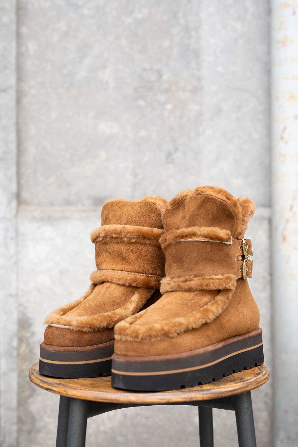 BOTAS DE ANTE CAMEL CON PELO Y PLATAFO | BELLE VIE